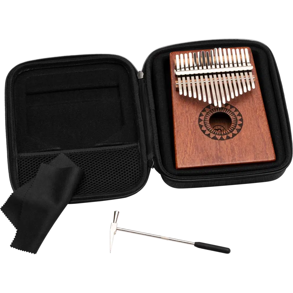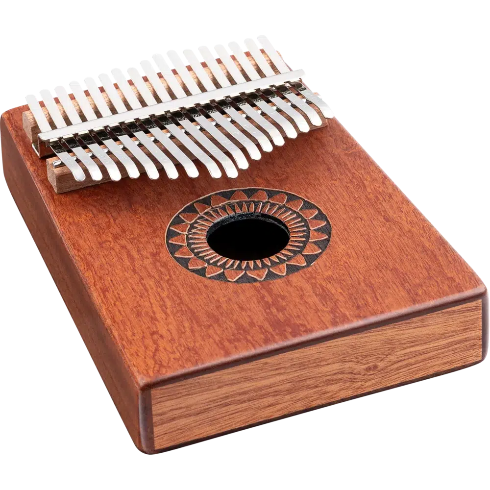 Unleash your creativity and soothe your soul with the Meinl Percussion Sound Hole Designer Kalimba in Sun. With pre-tuned C Major scale and chrome plated keys, this sapele wood thumb piano produces soft melodies for all skill levels. Its unique sound hole design adds resonance, perfect for meditation or relaxation. Includes travel case and accessories.