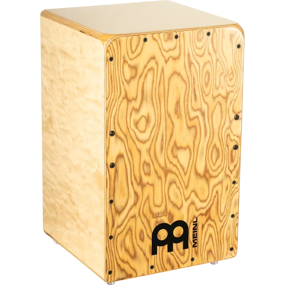 The Meinl Percussion Woodcraft Professional Cajon features 12mm birch construction for warm tone and attack. Specially wound metal strings create defined snare and bass sounds, with added sensitivity for finger rolls and back beats. The elegant mahogany and makah-burl frontplate finishes add striking aesthetics. Rounded corners ensure maximum comfort and touch.