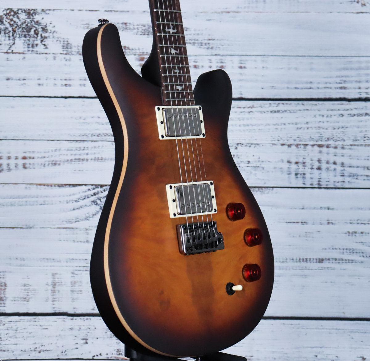 The PRS SE DGT is a collaboration between PRS and signature artist David Grissom, featuring a striking laurel burl veneer and high-performance features. With a 25" scale length, PRS patented tremolo, and custom-voiced "S" pickups, this limited edition model offers effortless playability and versatile tones. Experience vintage warmth to saturated mid-gain tones with the unique DGT control layout. Limited to 1,000 made in 2025.
