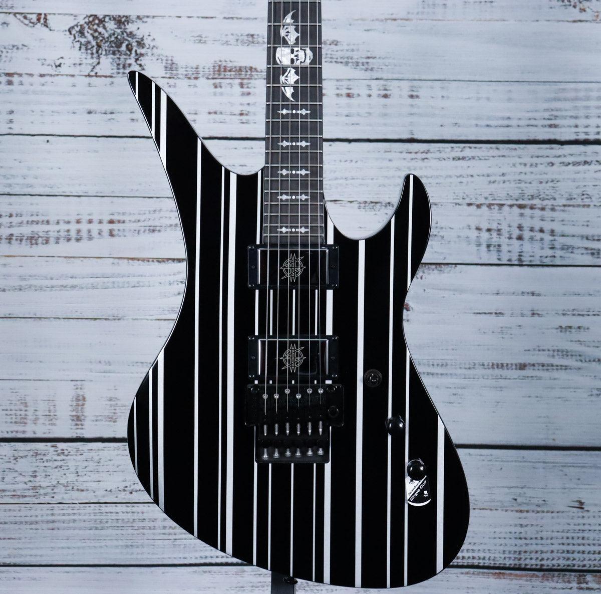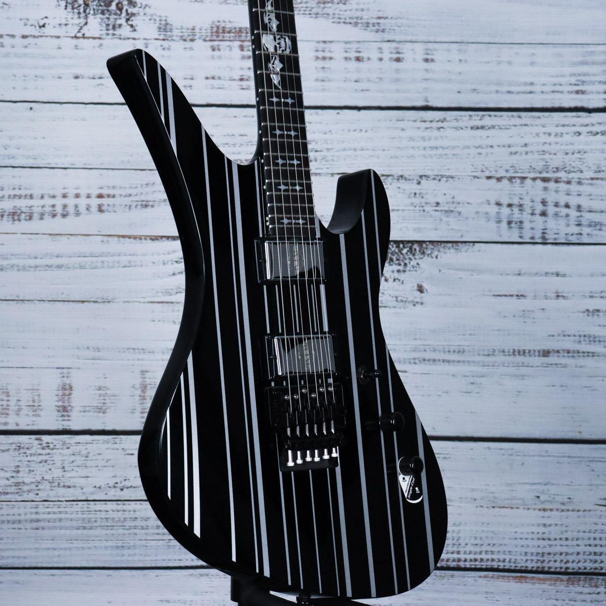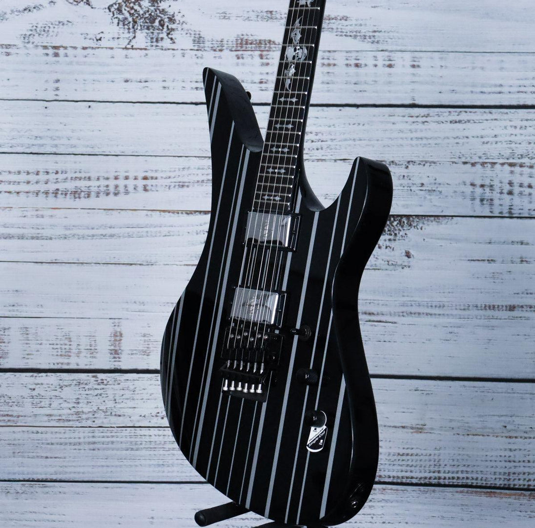 The Schecter Synyster Custom delivers professional-grade performance wrapped in stunning aesthetics. This gloss black finish with silver pinstripes creates an aggressive, eye-catching look that commands attention on stage or in the studio. Built for serious players, it combines premium construction with the signature style of Avenged Sevenfold's Synyster Gates. Whether you're shredding metal riffs or exploring versatile tones, this instrument offers the reliability and tonal depth that musicians demand.