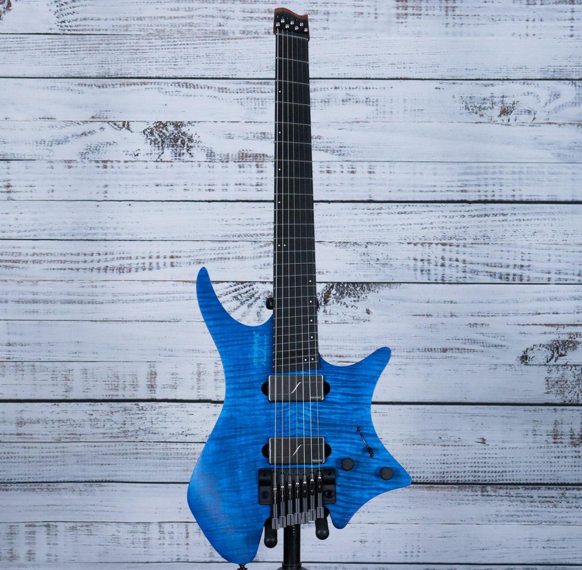 The 2024 Strandberg Boden Prog NX 7 in Deep Blue elevates a classic favorite with a Roasted Maple neck paired with a jet-black Ebonol fretboard, enhancing durability and playability. Retaining its chambered Swamp Ash body and renowned American-made Fishman pickups, it delivers the signature clarity and expressive tremolo tone players expect. The upgraded EGS Rev7B tremolo bridge with a pop-in arm offers improved stability and smoother operation, making this model a refined choice for professionals seeking precision and versatility.